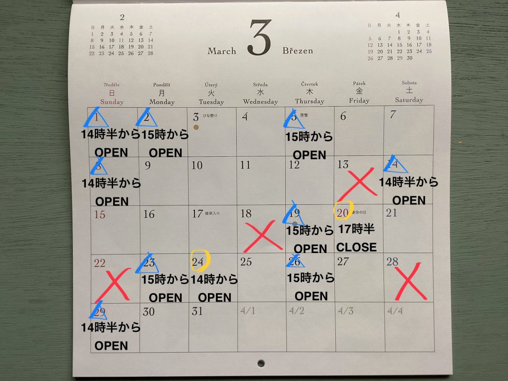 不規則ですが、OPENはしてる日が多いので時間のみお気をつけ下さい。